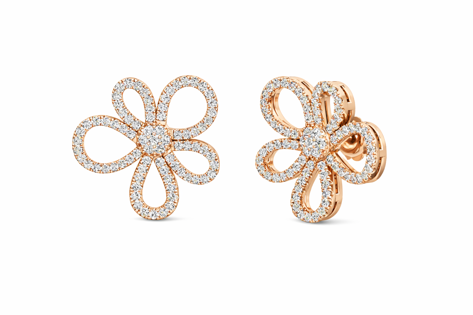 These elegant five-petal floral design with pavé-set diamonds forming a modern, airy flower silhouette.